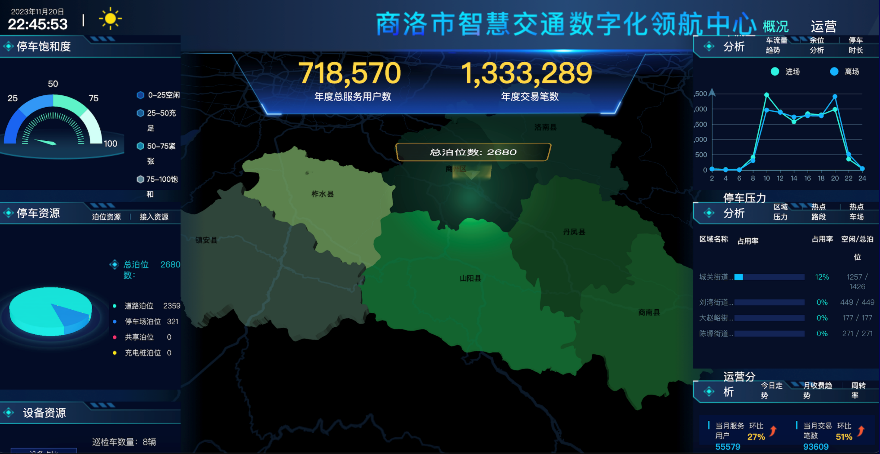 商洛市商州區(qū)智慧停車項目,一共管理了1800個泊位,2023年6月新增5臺巡檢車上線正式運營,750個泊位使用純視頻巡檢車模式,配置5個巡檢員、5個貼單員,巡檢員15分鐘一輪,視頻巡查車抓拍在場車輛信息經路通物聯2.0(PaaS)透傳至業(yè)務平臺。視頻巡查車抓拍在場車輛信息作為停車收費證據,后期正在規(guī)劃安裝地磁配合巡檢車使用。