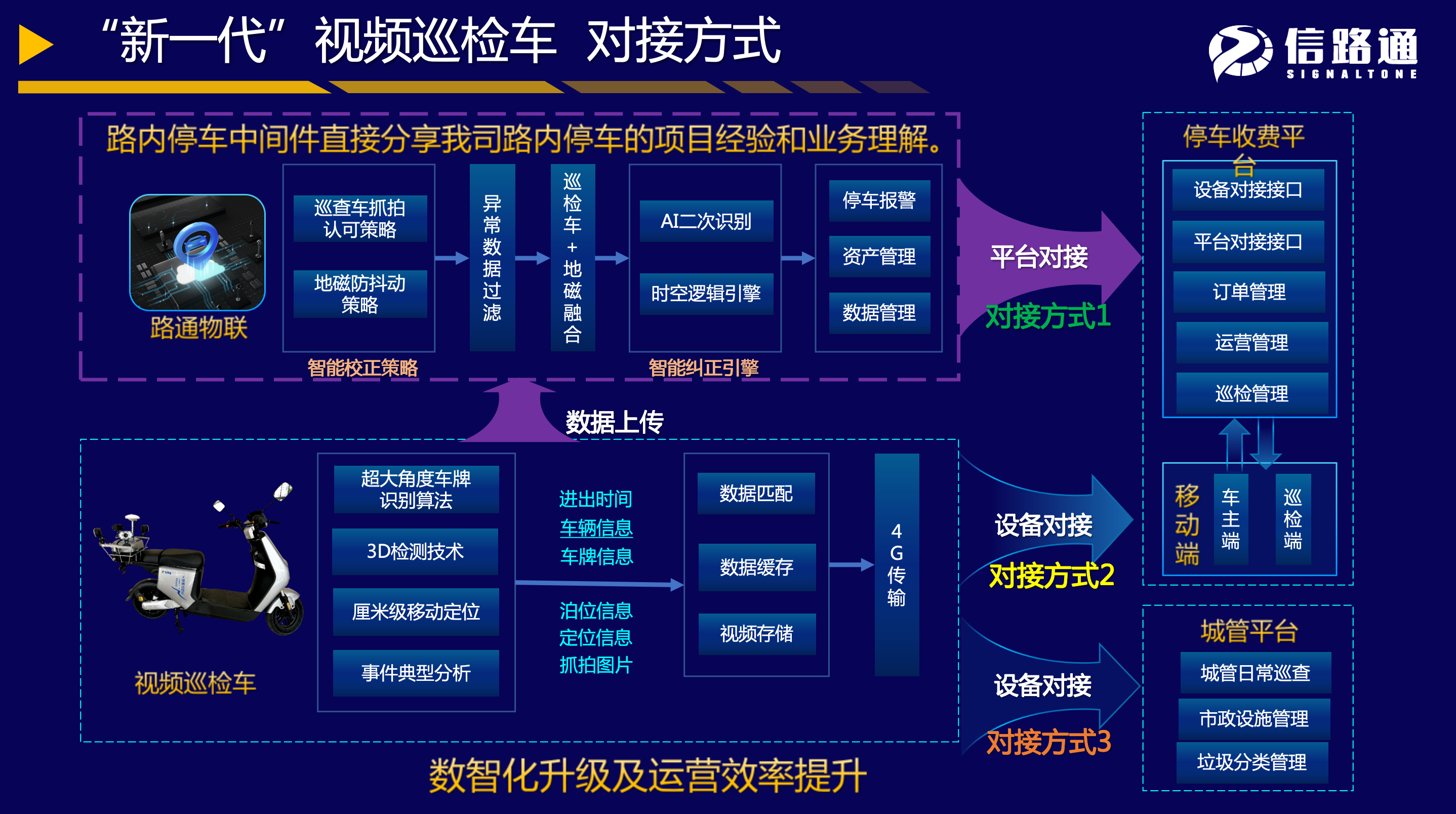 新一代”視頻巡檢車前端采集單元采用了800W像素,超短焦距鏡頭,每個前端采集單元均包含了獨立的NPU高算力單元,可以實現每秒25幀的逐幀分析計算,結合信路通根據大模型生成的車輛3D檢測及超大角度車牌識別算法,不但可以實現了99.5%+超高車牌識別率,而且還大幅提高了不同類型的泊位適應性,并降低了日常巡檢員的騎行要求。