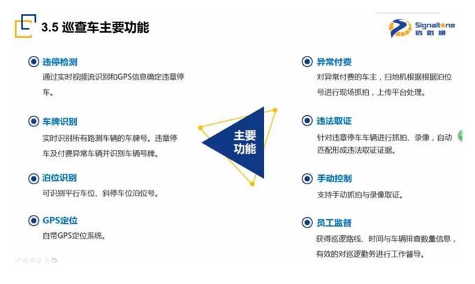 巡查車的車載視頻記錄可作為證據(jù)使用,而且能解決付費(fèi)異常和違章停車的問題,能準(zhǔn)確記錄所有車輛的車牌號、車位號、時間工號等多方面的信息。設(shè)備放置在巡查車頂,可全方位獲得車尾、全景、車頭相關(guān)車輛的信息,。