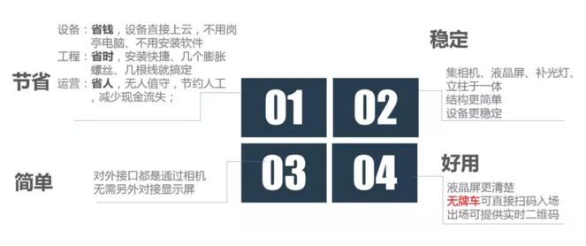 優(yōu)點在于利用云管理,減少基礎(chǔ)設(shè)備成本,越簡單,越穩(wěn)定;電子支付,快速出入。