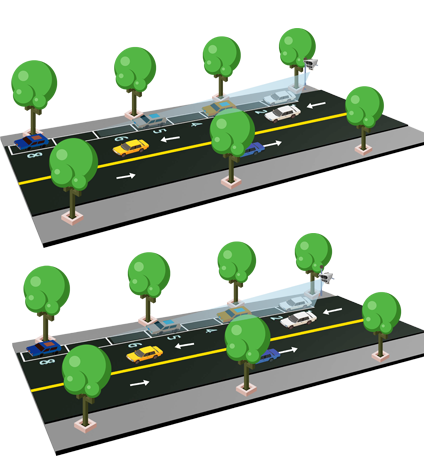 ? 中位正照:安裝于停車泊位道路同側(cè),最多可覆蓋6個泊位